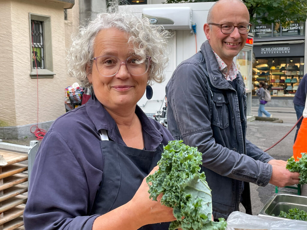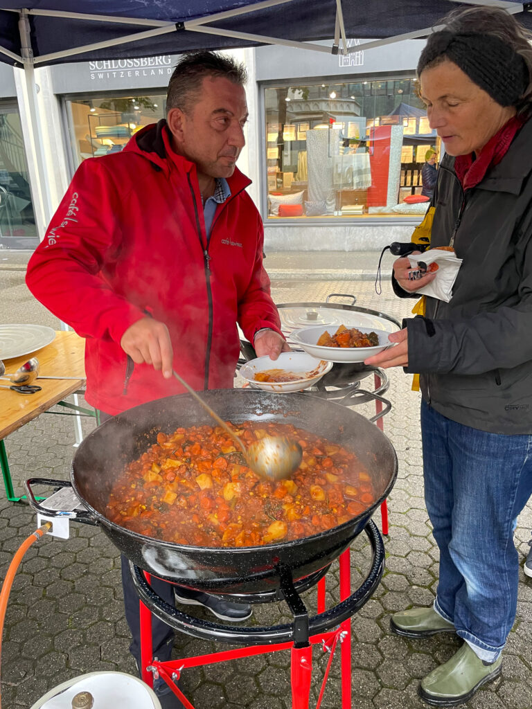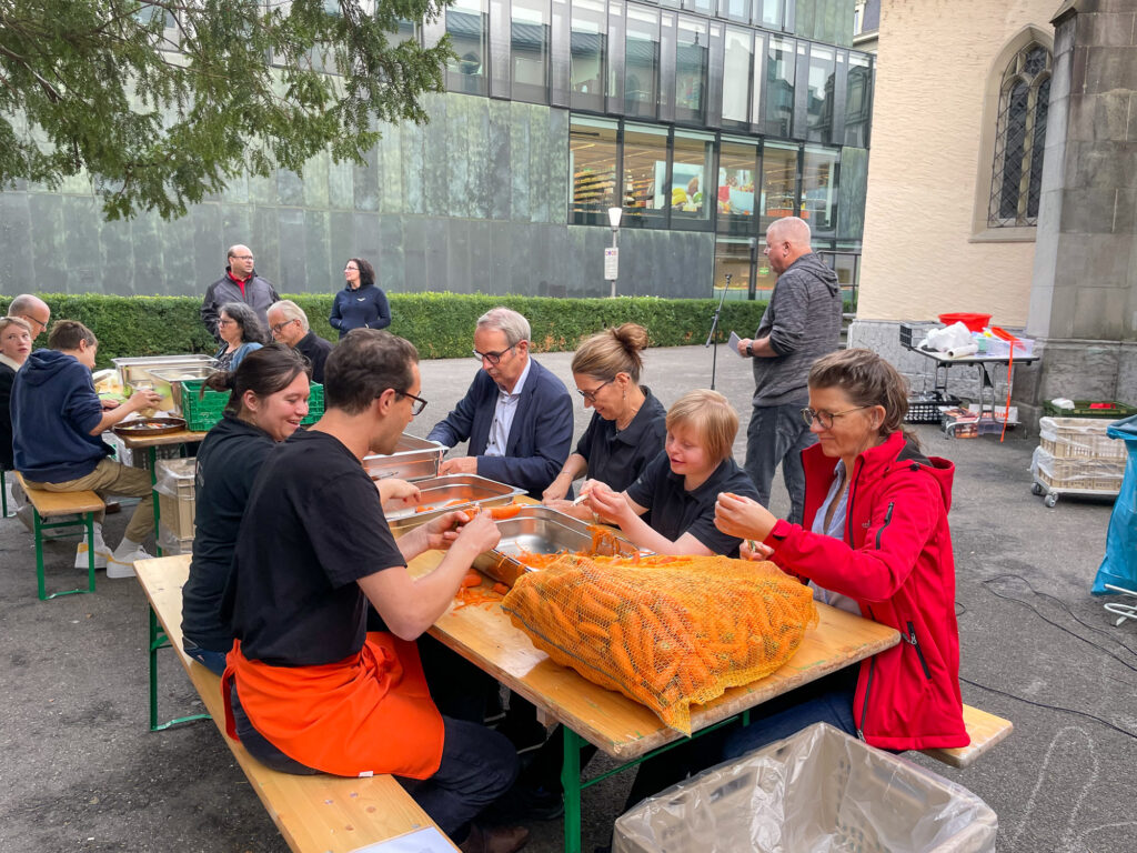 Der Apéro und der Hauptgang wurden von der SHL Schweizerische Hotelfachschule Luzern aus Zutaten zubereitet, die sonst im Abfall gelandet wären – doch an diesem Tag sorgten sie für echte Gaumenfreuden. Auf dem Menüplan standen Süsskartoffelkroketten mit Apfel-Chutney, Gurken-Sommerrollen mit Senf-Relish und Gnocchetti aus hartem Brot mit fermentierter Tomatensauce und Käserindencreme. Das verführerische Dessert wurde aus geretteten und saisonalen Zwetschgen durch das Restaurant Wärchbrogg zubereitet. Die 400 feinen und abwechslungsreichen Gourmet-Portionen gingen weg wie heisse Weggli.