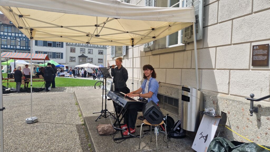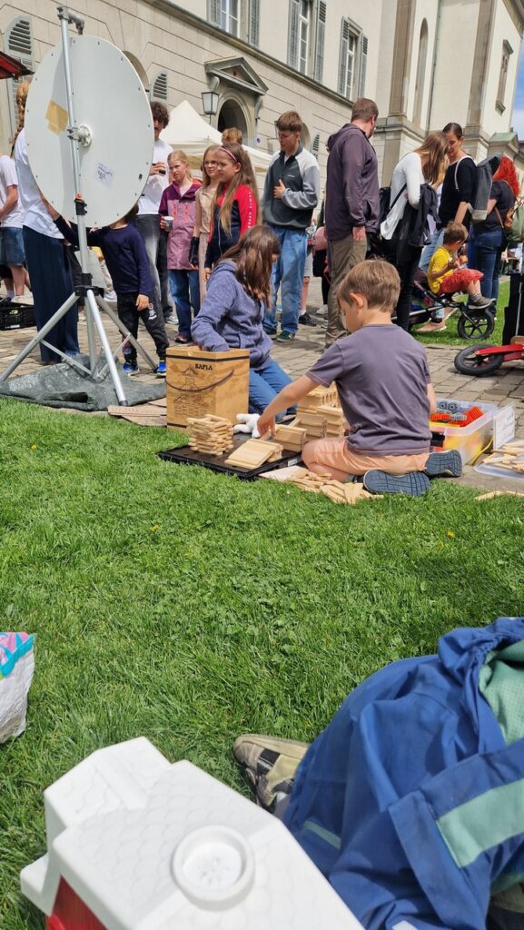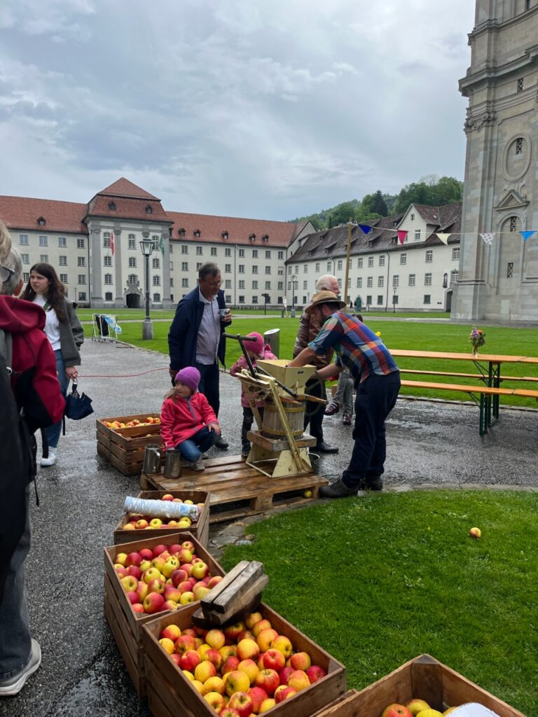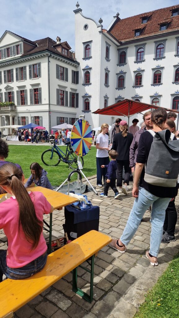Ein Teil der geretteten Lebensmittel wurde direkt vor Ort zu schmackhaften Gerichten verarbeitet, während anderes – darunter viel Brot, Früchte und Gemüse – gegen eine Kollekte oder als Gewinn beim beliebten Glücksrad abgegeben wurde. Das Glücksrad war bei Gross und Klein ein voller Erfolg und sorgte für viel Freude. Auch die Kapla-Bauecke zog zahlreiche Kinder an, die mit Begeisterung ihre Kreativität auslebten. Besonders beliebt war der frisch gepresste Apfelmost aus aussortierten Äpfeln – ein einfaches Produkt, das für viele zum Highlight wurde. Zudem gab es einen spannenden Wettbewerb, bei dem informative Fragen rund um Nachhaltigkeit beantwortet werden konnten. Als Hauptpreis wurde ein Kochkurs vergeben, der der glücklichen Gewinnerin viel Freude bereitete.